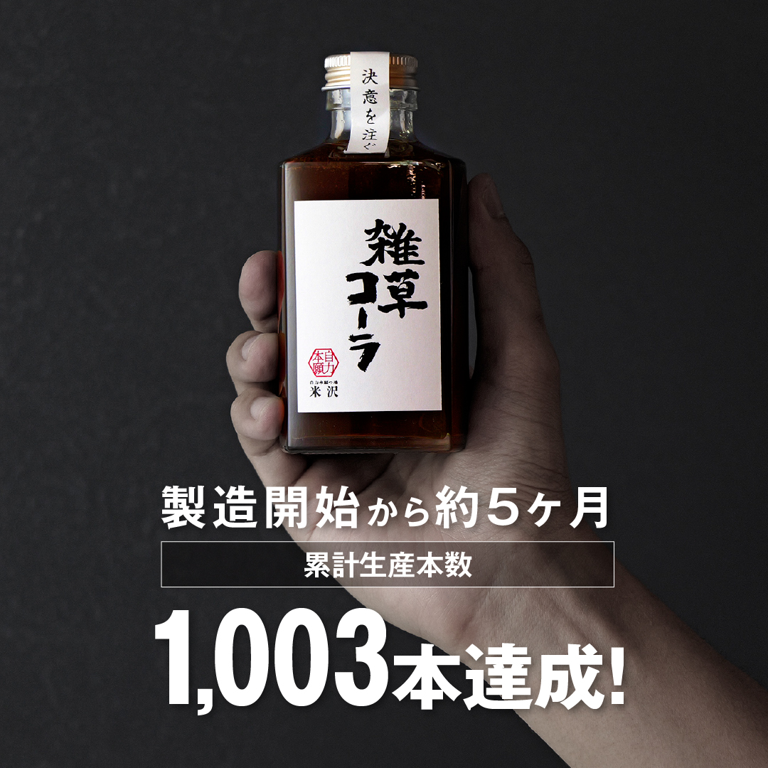 おかげさまで「雑草コーラ」は、2025年6月末の販売開始から約5ヶ月。累計製造本数が1,003本を突破しました。