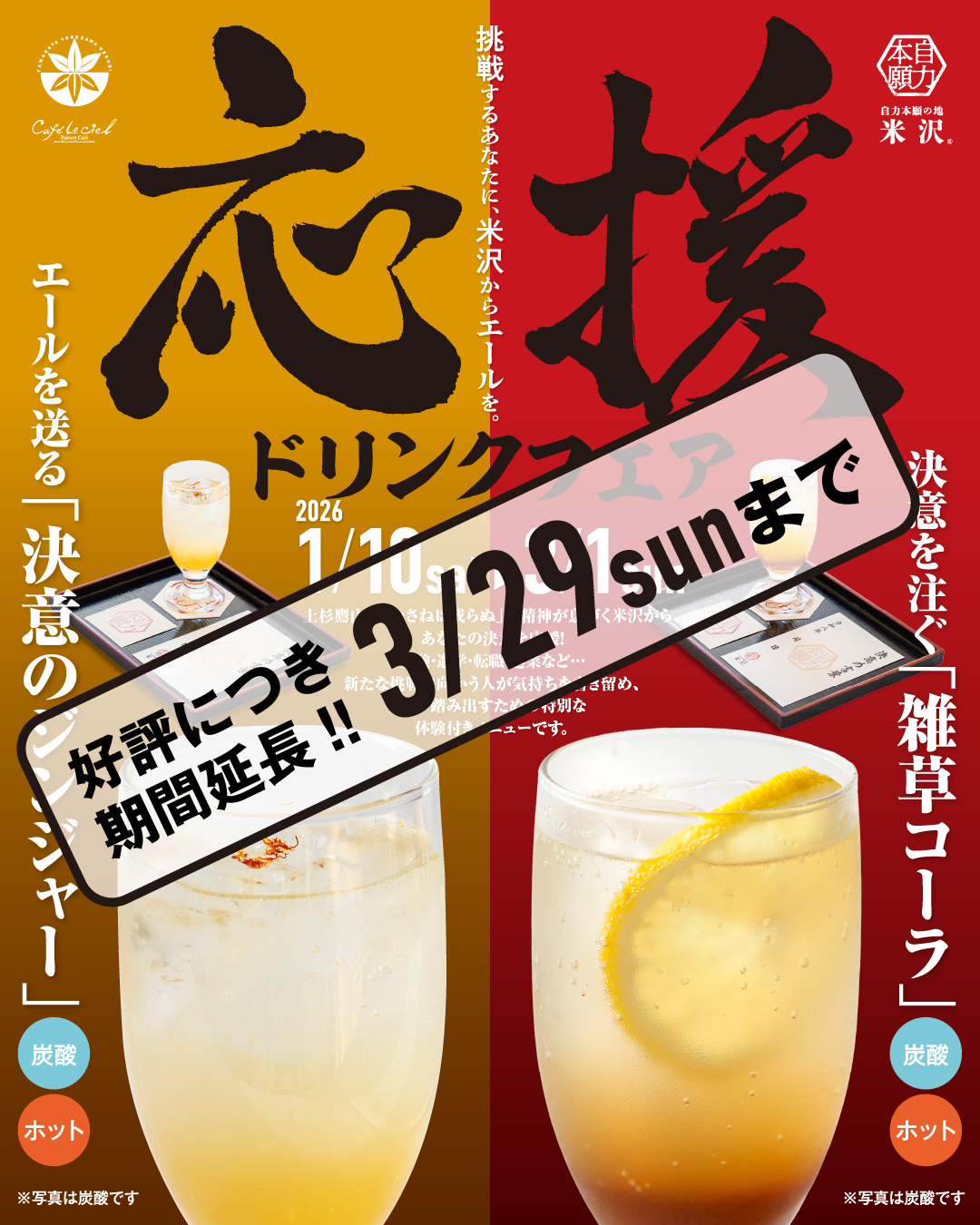 上杉鷹山公「なさねば成らぬ」の精神が息づく米沢から、新たな挑戦に向かう人を応援する特別なドリンクフェアを2026年1月10日(土)より開催します。