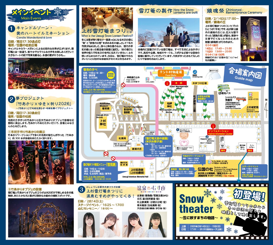 上杉雪灯篭まつりの公式サイトはこちら▶ https://yukidourou.yonezawa-matsuri.jp
